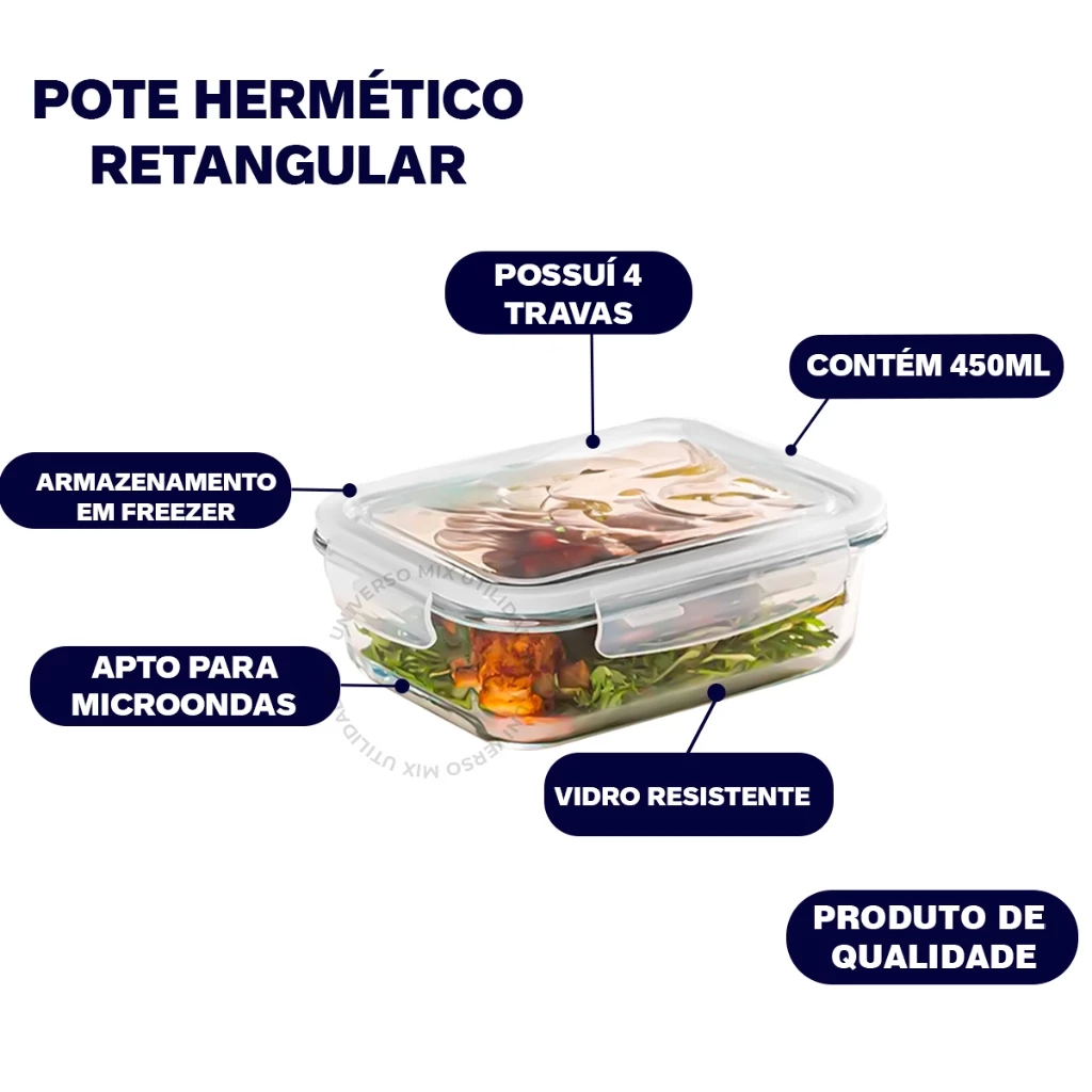 Kit 10 ou 5 Potes Vidro Hermético 450ml Retangular Mantimentos Marmita Premium Preços