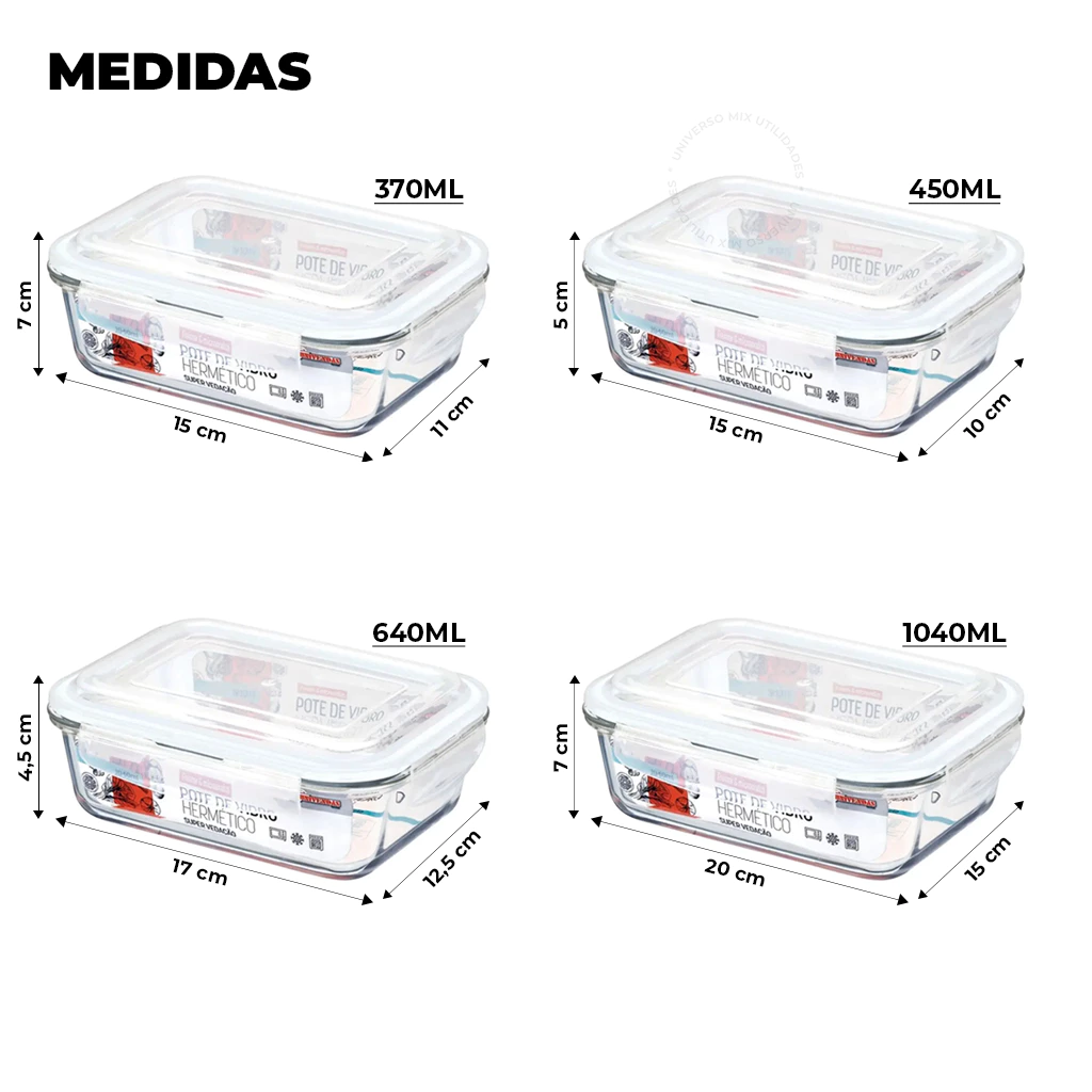 Armazene e transporte seus alimentos com segurança e estilo! Os Potes de Vidro Herméticos garantem vedação eficiente, resistência e versatilidade para o dia a dia.