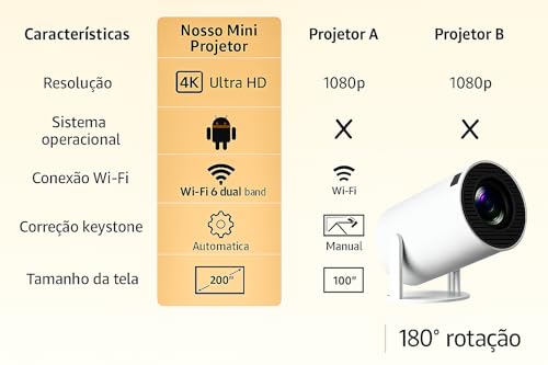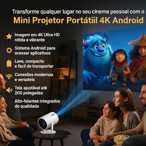 Transforme qualquer espaço em uma verdadeira sala de cinema com o Mini Projetor Smart 4K Android Bahrein. Compacto, potente e inteligente, ele combina alta tecnologia com design elegante e portátil.